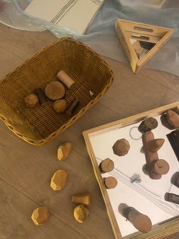 When I discovered Oplay Blocks I quickly recommended them for our sessions and one set that comes out time and time again is the rocks. We have many other well loved block sets at the Galleries, used often for constructing sculptures both in the play spaces and in led nursery sessions, however rocks offer something different. The multi faceted form seems to be endlessly entrancing for little hands, feeling and grasping. The irregular shape means they are more challenging to stack and build with, making them the perfect hurdle for experienced little ones who want to try and master a new skill. The shape of the blocks is open ended despite the name ‘rocks’ we have used them in a session which focused on fruit and vegetables ( the children loved to play, cooking and peeling them as potatoes!) and also sessions with opulent costumes, children reimagining them as large jewels, wrapping the shapes in cellophane and tape.